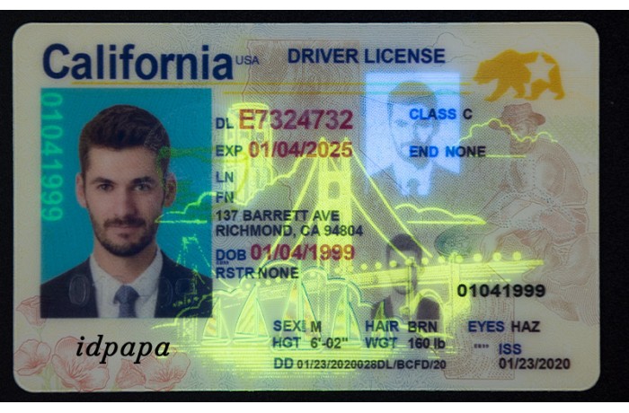 IDpapa fake ID California cards are produced in a 1:1 ratio to real CA IDs, with a focus on achieving consistency in card details. Our UV images are not static and one-dimensional but are designed to present differently under different lighting conditions, just like real IDs. We use Teslin and Poly materials that meet DMV standards and employ advanced lamination technology to create California cards with rich colors.