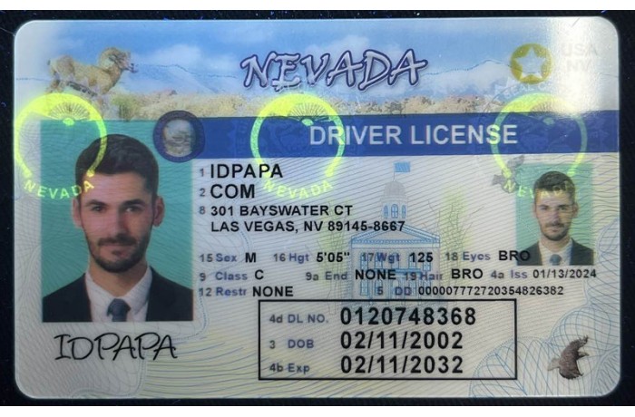 IDpapa fake ID Nevada cards are produced in a 1:1 ratio to real NV IDs, with a focus on achieving consistency in card details. Our UV images are not static and one-dimensional but are designed to present differently under different lighting conditions, just like real IDs. We use Teslin and Poly materials that meet DMV standards and employ advanced lamination technology to create Nevada cards with rich colors.