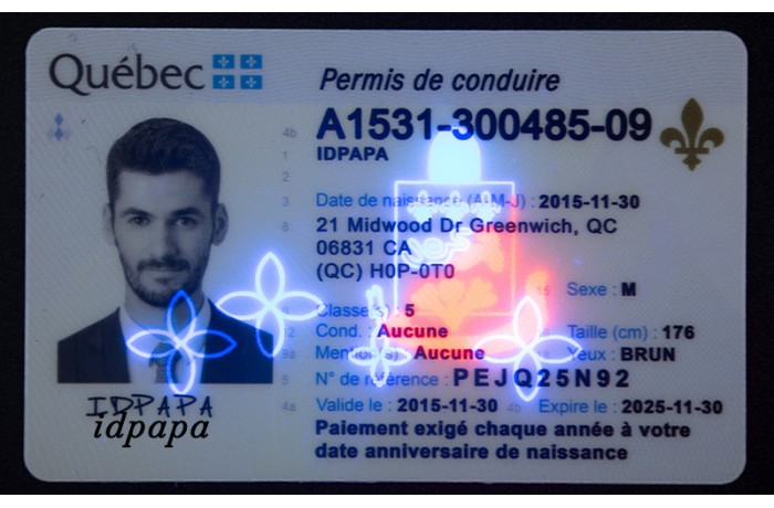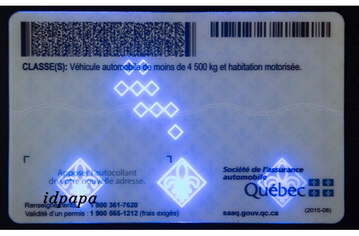 IDpapa's fake Quebec ID cards are produced in a 1:1 ratio with real IDs, emphasizing consistency in card details. Our UV images are not static and one-dimensional but designed to appear differently under varying lighting conditions, mimicking real IDs. We utilize Teslin and Poly materials that meet the standards set by the Ministère des Transports, and employ advanced lamination technology to create Quebec ID cards with vivid colors.